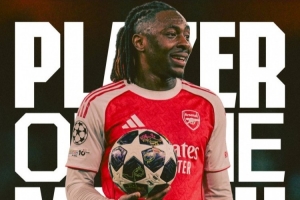 1次关键传球+2次抢断!埃泽当选本轮欧冠阿森纳队内最佳球员